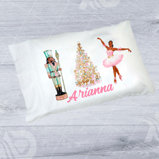 Personalized Christmas African American Ballerina Nutcracker Pillowcase